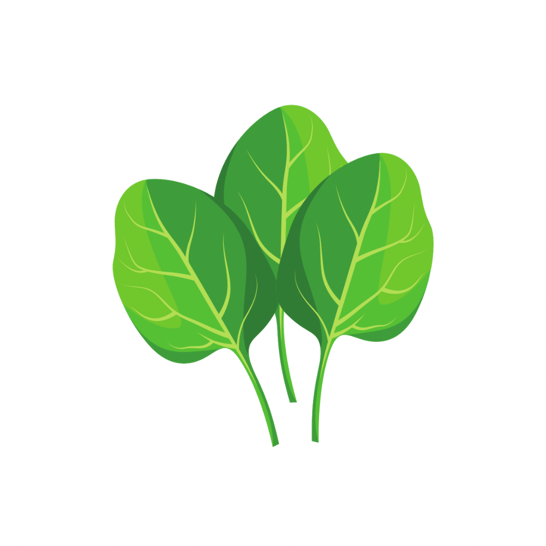 Illustration of a bunch of fresh green spinach with stems and leaves.